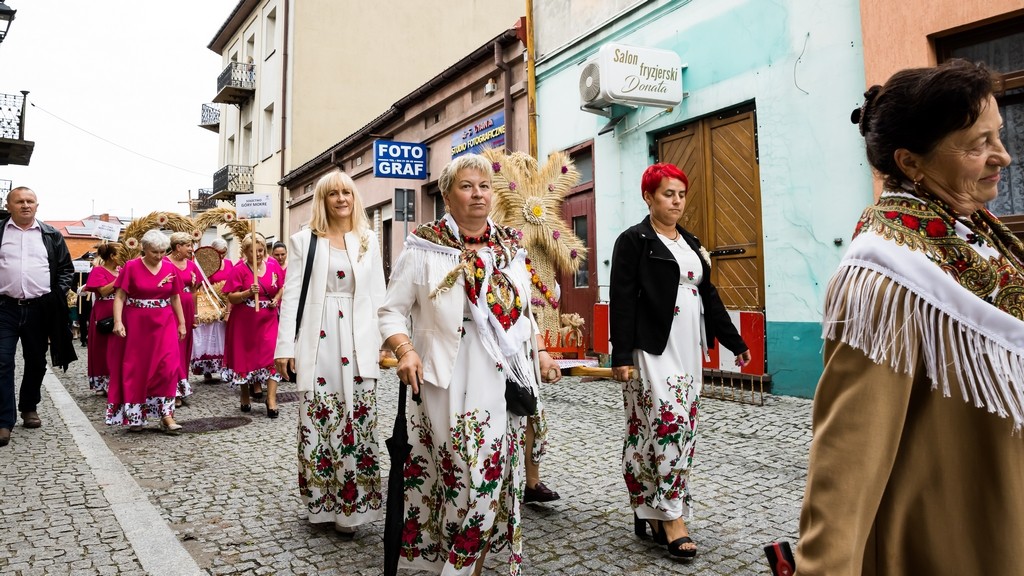 Uroczystości rozpoczęły się od uroczystej Mszy Świętej w kościele parafialnym, po której tradycyjny korowód dożynkowy przeszedł na rynek miasta. Tam odbyły się główne obrzędy dożynkowe. Ważnym punktem programu była prezentacja pięknie przygotowanych wieńców dożynkowych.