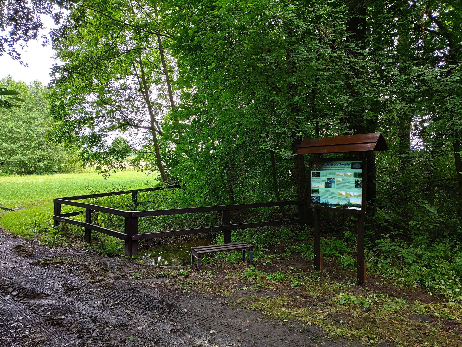 Źródło „Niechmirów” objęte jest ochroną prawną w formie pomnika przyrody. Oddalone o ok. 1 km od koryta rzeki, wypływa w strefie przystokowej płaszczyzny równinnej terasy dennej doliny Warty. Stanowi przykład wypływu wód podziemnych na powierzchnię o charakterze naporowym. Woda wydostaje się na powierzchnię pod ciśnieniem, z dużą energią, co powoduje spektakularny efekt pulsowania. Wypływająca ze źródła woda daje początek strumieniowi. Źródło „Niechmirów” stanowi najwydajniejsze i najlepiej eksponujące się w krajobrazie źródło w obszarze Parku Krajobrazowego Międzyrzecza Warty i Widawki.